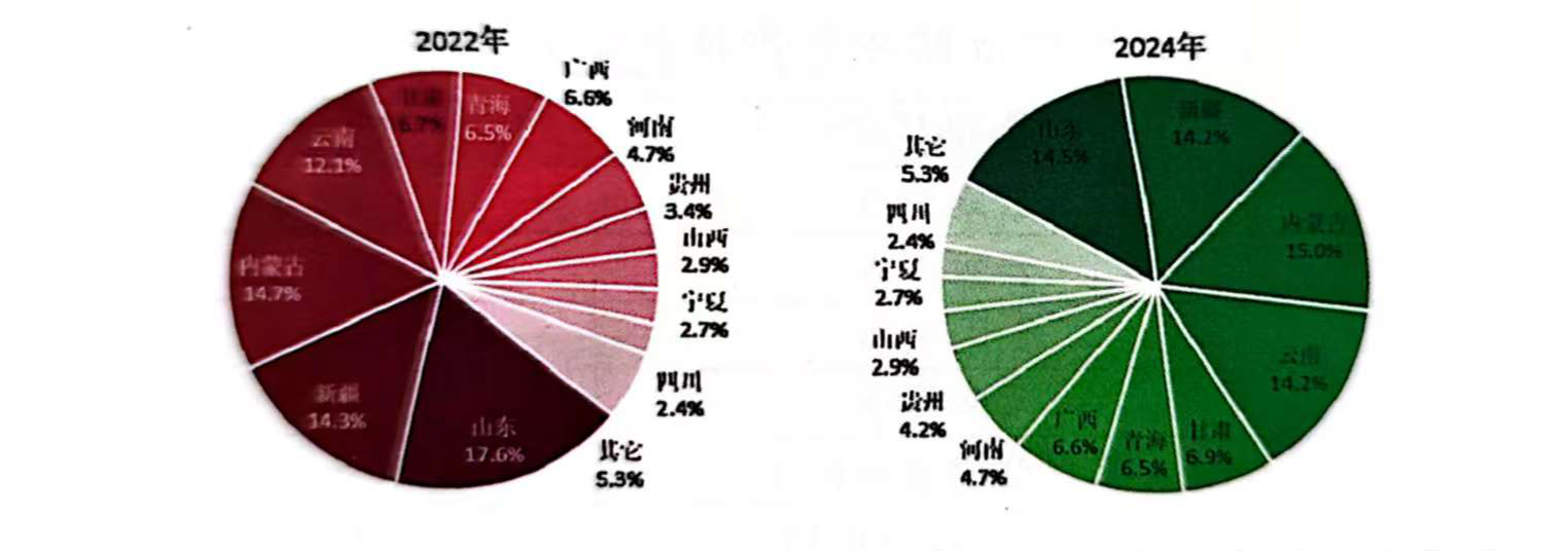 圖2-3 2023年和2024年中國(guó)電解鋁產(chǎn)能分布