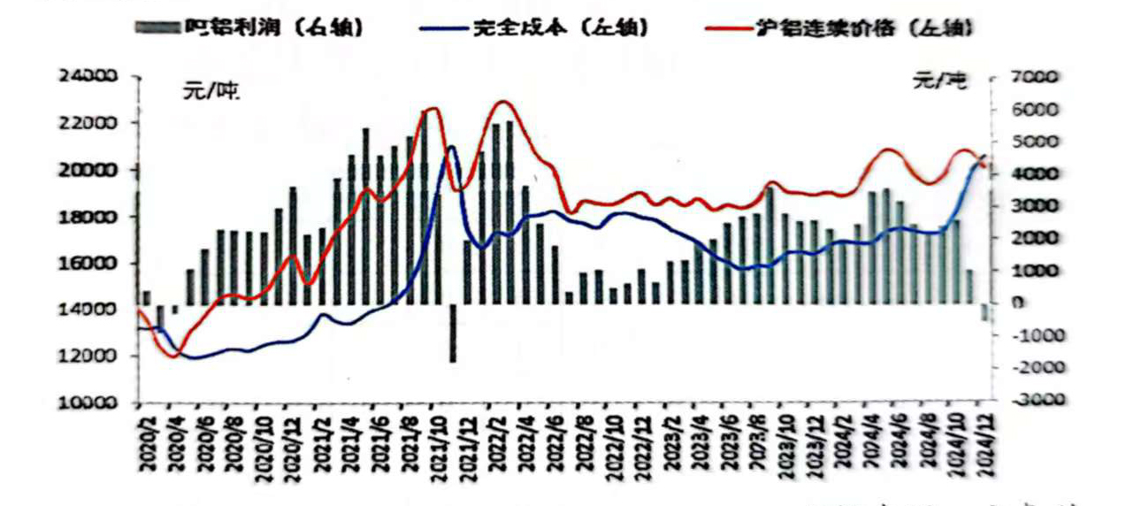 圖2-4 2024年中國(guó)電解鋁成本與理論盈虧走勢(shì)圖