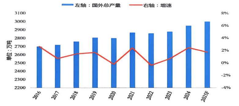 圖1-2 2016-2025F國外電解鋁產(chǎn)量